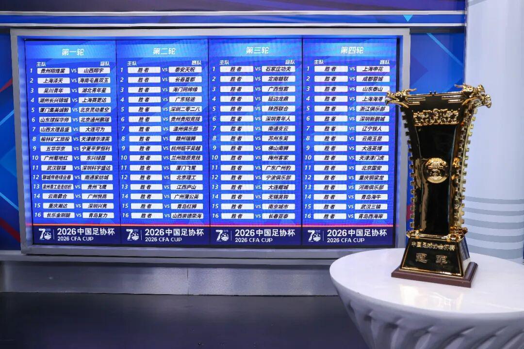 据悉,2026年恰逢中国足协杯举办70周年,本届赛事共有80支球队参赛,为国内最高水平的淘汰制足球杯赛,中超、中甲、中乙及业余球队均可参与。